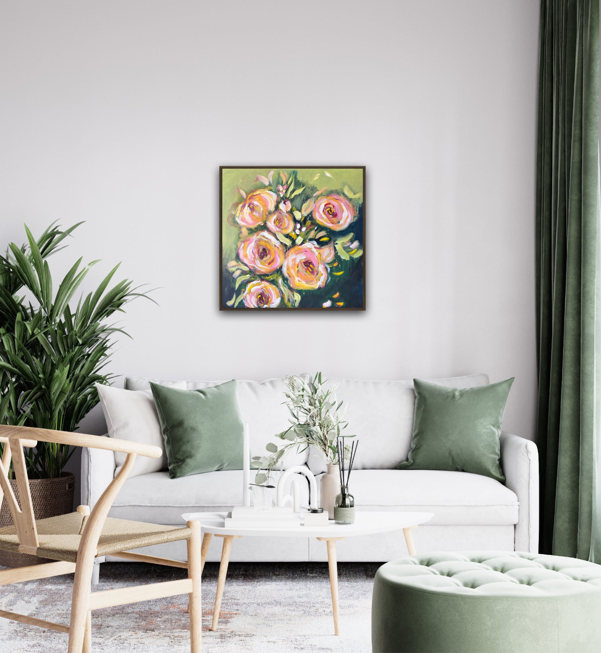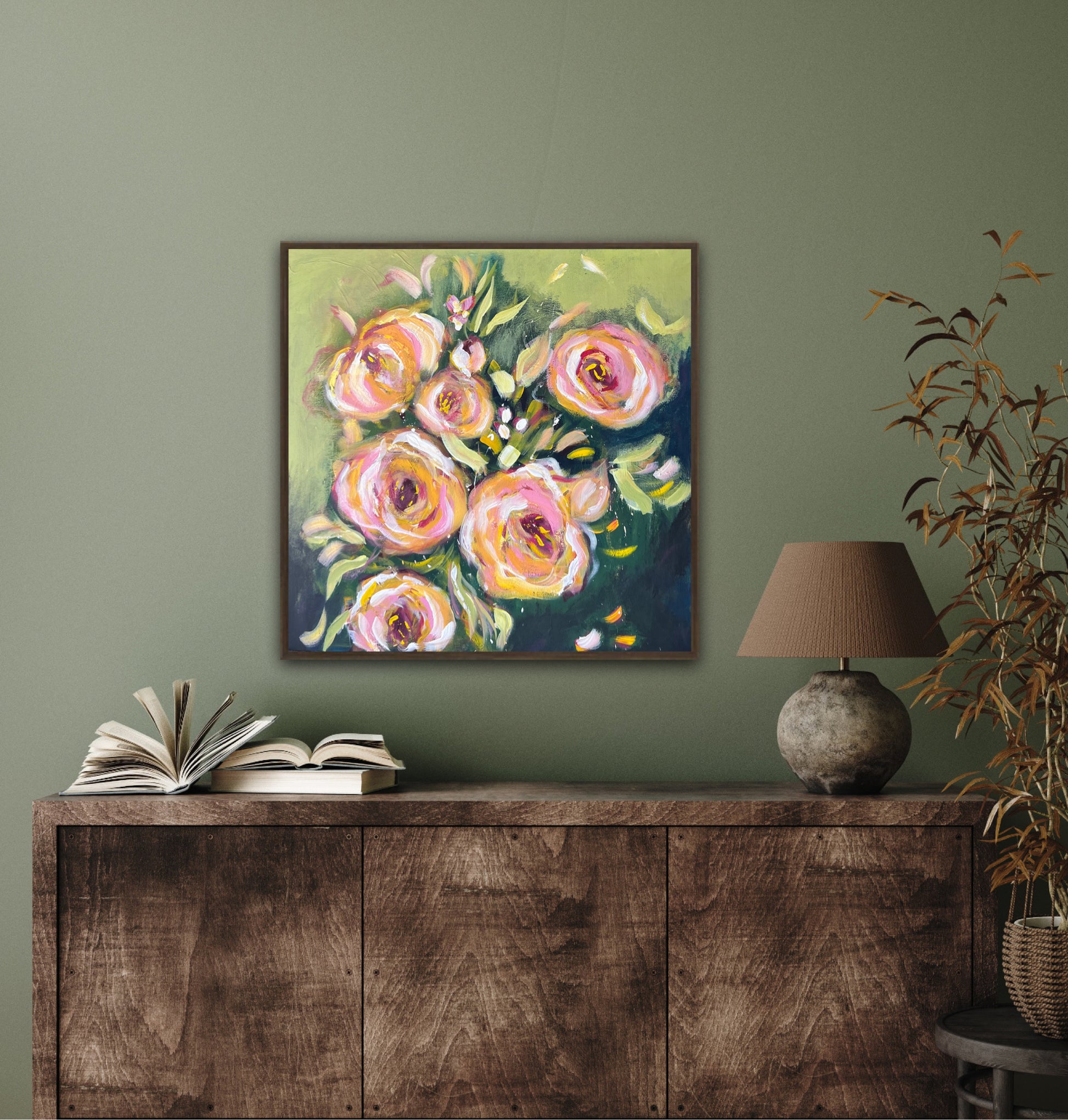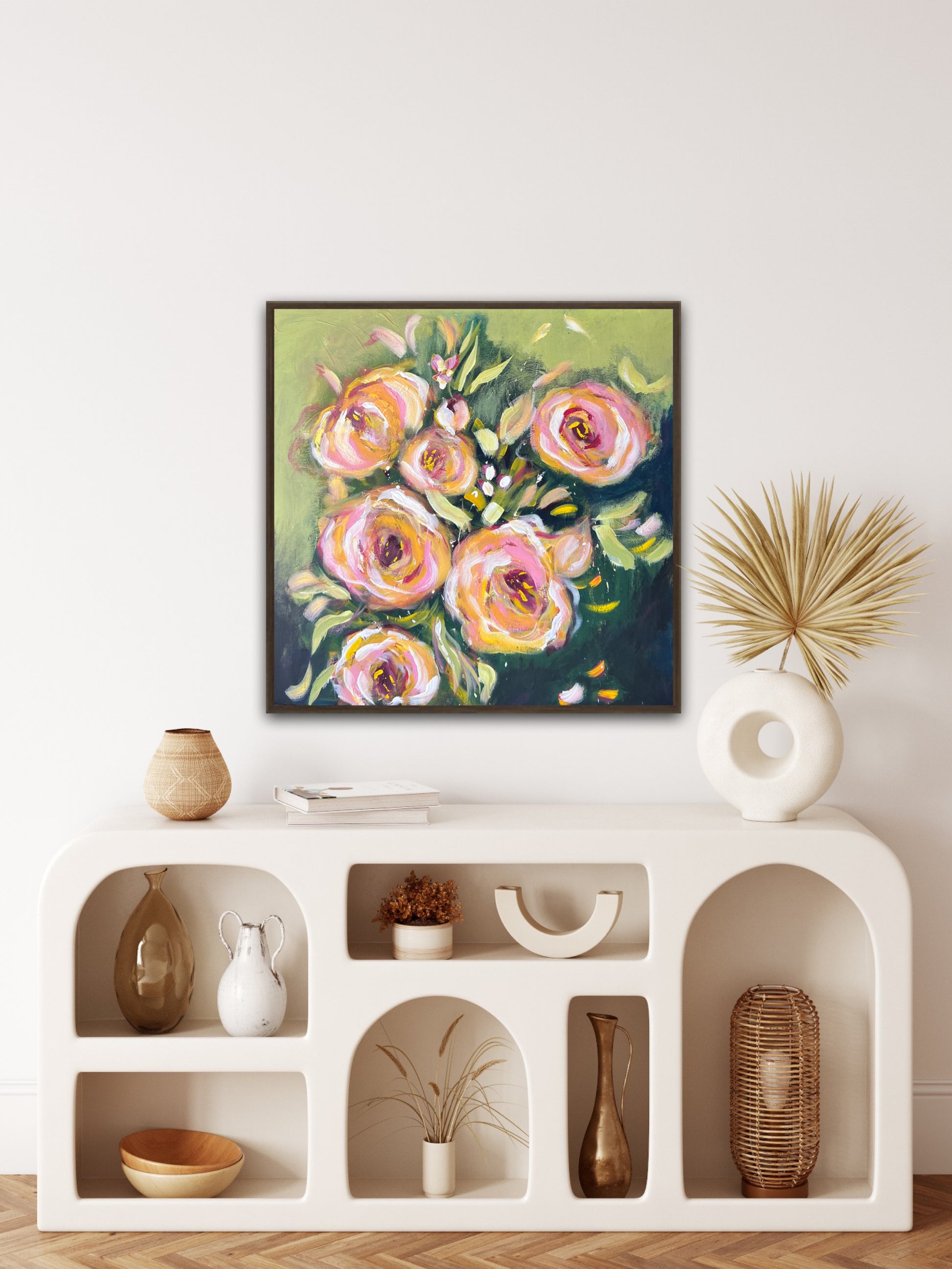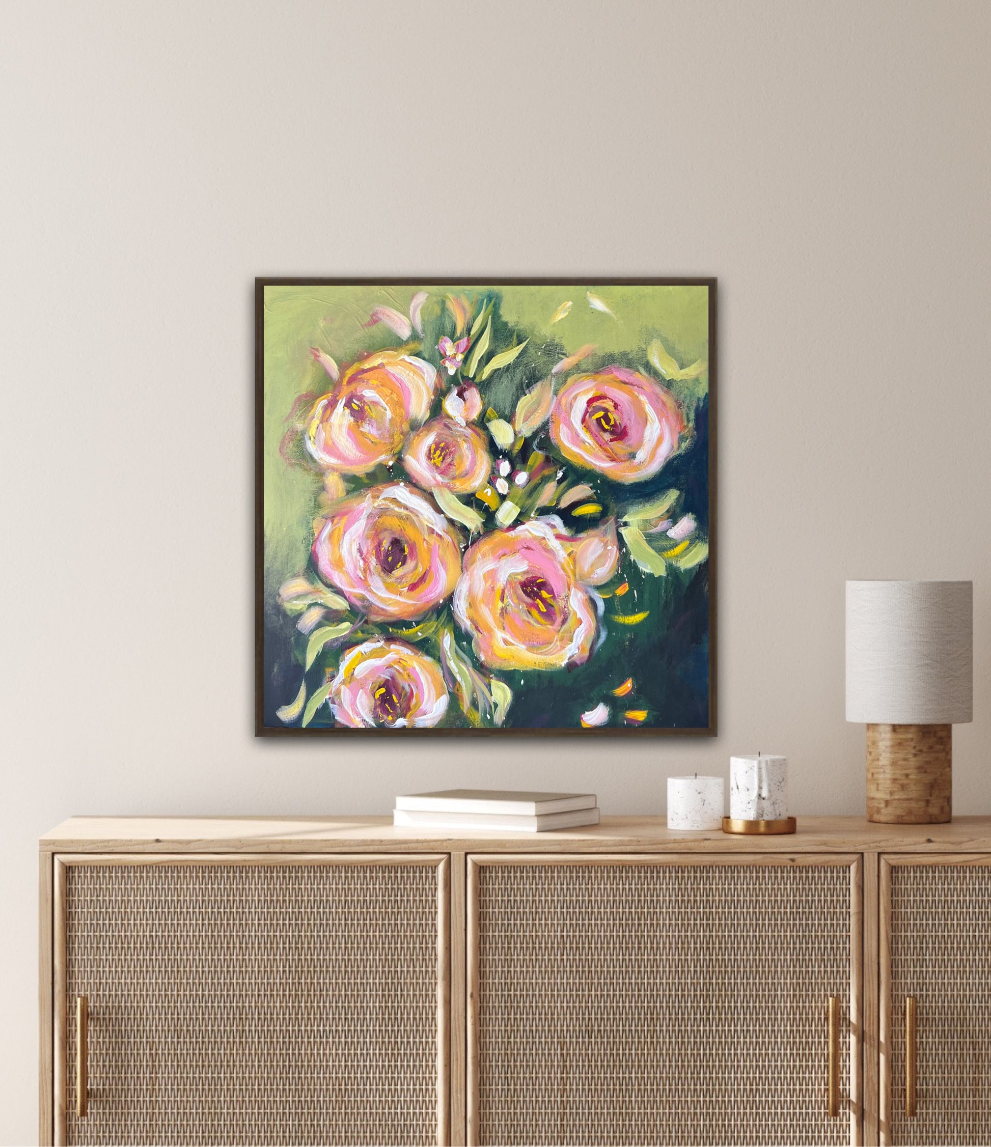 This is a lush floral artwork created on a professional quality deep edge canvas. I created this after returning from a refreshing Bali trip. It has already been part of many exhibitions and has been greatly appreciated by critics.
